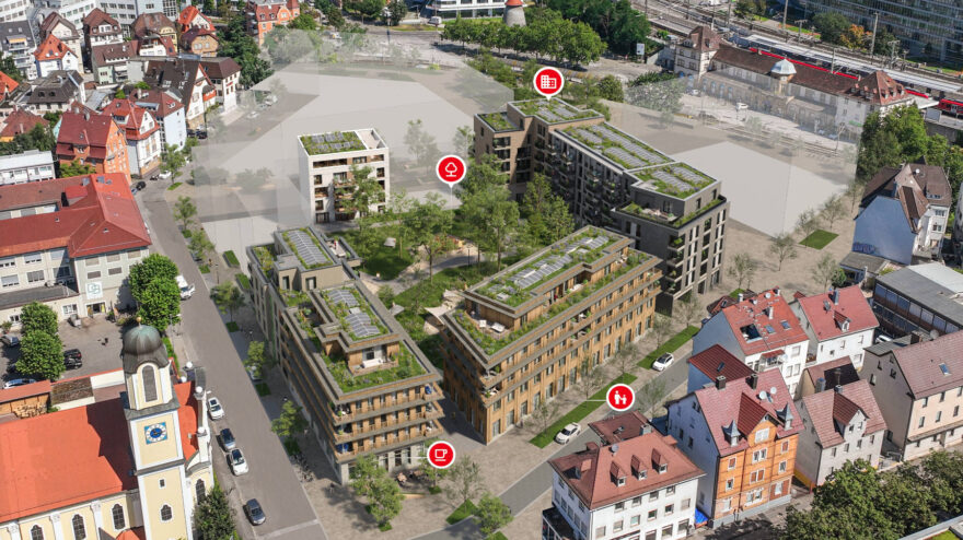 Auf dem 2,6 Hektar großen Gelände am Feuerbacher Bahnhof entsteht ein vielfältiges Wohn- und Gewerbeensemble, das modernen Wohnraum mit einer lebendigen Infrastruktur verbindet. Insgesamt wurden 102 Wohnungen realisiert, die sich an unterschiedliche Bedürfnisse und Lebenssituationen richten. Ergänzt wird das Angebot durch zwei innovative Cluster-Wohnungen, speziell konzipierte Wohnräume für Studierende sowie barrierefreie und rollstuhlgerechte Einheiten, um ein inklusives Wohnumfeld zu gewährleisten. Zudem wurde Stuttgarts erste Mieterbaugemeinschaft realisiert. Das Beste aus der Idee der Baugemeinschaften wird hier mit den Stärken der Genossenschaft zu einer neuen Form des gemeinschaftlichen Wohnens entwickelt.